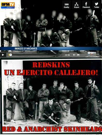 Belle aubaine pour le parti spoliateur et toute la gauche, pervers, pères verts, mussolanchoniens et consorts. Le Propaganda Staffel s’est empressé de monter en épingle ce qui, dans un pays démocratique, n’aurait été qu’un regrettable fait divers. Belle occasion pour la meute journalistique – 95% à gauche !- Les médias se couvrent de la boue des égouts. Heureusement, l’Internet permet de trouver des renseignements alternatifs, soigneusement occultés par la presse subventionnée par l’extorsion publique. Ainsi BFM TV a-t-elle été prise en flagrant délit de manipulation de documents, comme le signale Dreuz.info. On présente comme une photo anonymisée d’un group de vilains fascistes skinheads ce qui, dans la photo d’origine, est celle d’un ramassis de fascistes de gauche, « une armée dans la rue » (un ejercito callejero).