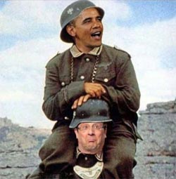 La citation la plus rigolote, est un morceau d’anthologie hypocrite tiré du Tweet du sieur Arnaud Leroy, «l’habit de Républicain de F. Fillon part en lambeaux. En ce jour, le bien coiffé devient laquais de la Volga». Venant d’un socialaud-fasciste, c’est presque un hommage du Vice à la Vertu ! Car qui est laquais de qui ? Captain Wreck, sa « république » est une tyrannie socialiste, et c’est lui le laquais d’Obambi. C’est si vrai qu’il a bel et bien été traité comme un laquais par son idole : il n’a pas participé aux discussions Obama-Poutine sur la Syrie. On s’entend entre Grands, et la valetaille (la « canaille », disait Scarron) n’a pas voix au chapitre.
