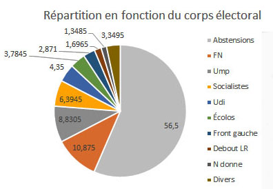 Moins d’abstentions, mais tout de même 56,5%. D’accord, plus on est loin d’un pouvoir, moins on vote ; mais il faut aussi compter sur le dégoût que suscite la caste politique chez les citoyens. Il est vrai qu’on nous propose du sur-réchauffé, des solutions – véritables problèmes – d’une autre époque, d’un autre monde pour des ennuis nés de nos propres fautes étatistes.