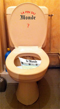 L’Immonde, tout le monde connaît. C’est une feuille gauchiste, voire islamo-gauchiste, européâstre, atlantiste, magouilleuse, manipulatrice ; bref : de propagande. Ça appartient à 64% à un groupe détenu depuis 2010 par trois pieds-nickelés : Xavier Niel, Pierre Bergé et Matthieu Pigasse. On connait les options perverses de Bergé; quant à Pigasse, c’est le magnat de la « presse Pigasse », bien-pensante ô combien, dont parlait Finkielkraut au grand ébahissement de l’étourdie Salamé.