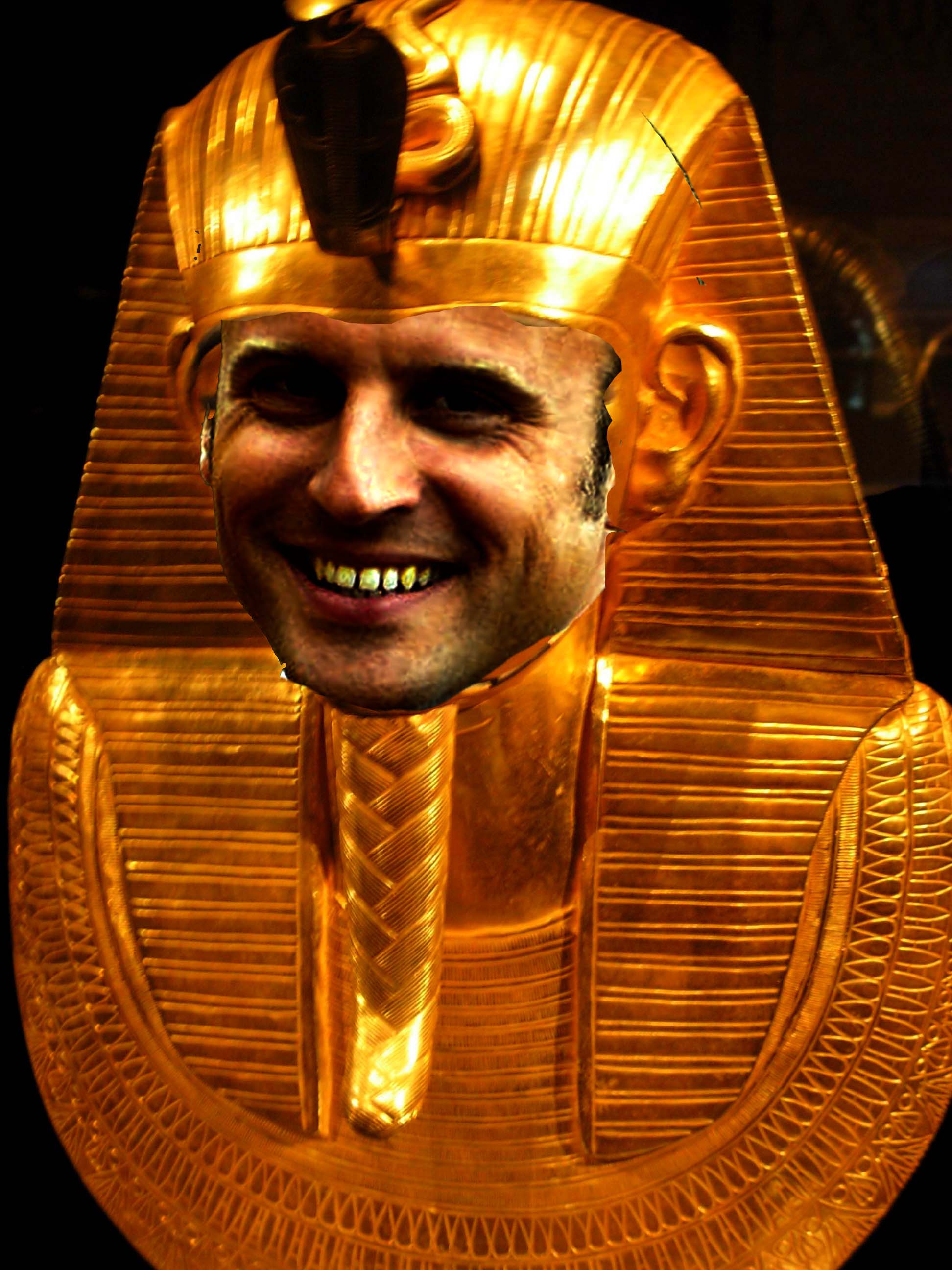 - Ou, puisqu’il a squatté la pyramide du Louvre, le pharaon Tout-Ankh-Macron