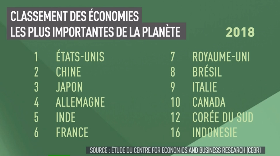 Nous étions naguère encore, avant le socialisme fanatique, une « moyenne puissance », bientôt rétrogradée au cinquième rang à cause d’une politique néfaste de redistribution caractérisée par la spoliation des citoyens productifs et des entreprises au profit de millions d’assistés, dont les immigrés « économiques ». Mais voilà : une étude du Centre For Economics and Businesse Research (CEBR), calculant des projections à partir des statistiques économiques disponibles, nous prédit une rétrogradation de la cinquième à la sixième place mondiale en 2018, l’Inde (7,11% de croissance annuelle !) prenant la cinquième place.