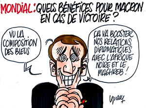 Là gît le lièvre ! La victoire des mercenaires permet une exploitation politique des plus primitives mais hélas des plus efficaces. Souvenons-nous de l’abominable slogan chiraco-jospinien de 1998 : « la France Black-Blanc-Beur ». Nul doute que l’actuel malfaiteur de l’Élysée entend bien tirer parti de la victoire escomptée d’une équipe qui, considérant sa composition, devrait s’appeler Équipe de France-Afrique. Déjà, l’arrivée de ce salmigondis jusqu’à l’épreuve finale a détourné de trop nombreux Français des préoccupations essentielles : leur survie et la survie de la Nation. Les jeux du cirque ne sont rien de mieux qu’un leurre politique.