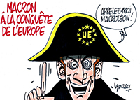 D’ailleurs le malfaiteur de l’Élysée entend bien que ça continue. Il prend la tête de la Croissannade (4) des Tartufe européâstres pour le Grand Remplacement et contre ceux qu’ils appellent, méprisants, les populistes. L’ami Vautrin a montré qu’en fait, ce type est un guignol actionné par Berlin et les monopoles mondialistes tout heureux de se planquer derrière lui. Le Jupinet frétillant se pose en grand ennemi de Viktor Orbán, une des deux Grands Patriotes européens, l’autre étant Salvini, qui s’opposent vigoureusement à l’invasion. En fait, les traîtres européastres sont inquiets de la montée du patriotisme dans certains pays d’Europe, ils ont même les flubes, yaka les voir agiter leurs antennes de cloportes, et on assiste à un déchaînement de haine et de proscription à l’encontre des Patriotes. Même qu’un Guy Verhofstadt capo des « libéraux » au Parlement européen appelle les États-Unis à se joindre à l’UE pour arrêter « immédiatement » Viktor Orbán : « Nous ne pouvons pas laisser les gouvernements populistes d’extrême droite entraîner les États européens démocratiques dans l’orbite de Vladimir Poutine ». Ben ça, alors, c’est d’ la « démocratie » !