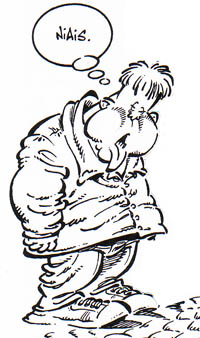 Me voilà dans l’interminable file d’attente de la caisse ; il n’y a guère de monde, mais là encore des rombiasses disputent leurs collections de billets de réduction : 10% par-ci, 20% par-là, la malheureuse caissière n’en peut plus de déduire, et pendant ce temps-là je ronge mon frein. Je regarde s’il n’y a pas quelque joli minois pour éclaircir ce jour, mais au lieu de ça je trouve surtout des gravosses et des gravos, Jennifer dans la trente-cinquaine enveloppée et Kevin mal rasé, parfois avec une barbe mahométanoïde, souvent coiffé d’une ridicule casquettes pour camoufler une coupe de cheveux complètement débile. Couple « moderne », leur dénominateur commun est d’être affublés de tatouages et perçages. Prêtant l’oreille à leurs bavardages, je suis fixé : ce ne sont pas des prix Nobel. Récemment, deux ménages fort tatoués échangeaient des vues profondes à propos de leurs méthodes de gonflette. Les gars bronzés vantaient les mérites de telle salle où l’on soulève de la fonte et philosophaient sur un complément alimentaire « pas comme les amphét’ mais presque aussi bien. »