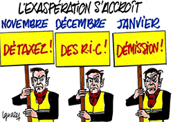Alors, le Peuple qui casque en pure perte se rebelle : quoi d’étonnant ? Il est certain que l’énergumène du coup d’État de 2017 a peur du Peuple. Aussi prépare-t-il à la fois une féroce répression (à la hauteur de sa frousse) et un enfumage, qu’on l’appelle réflexion ou concertation nationale. Il suffit de constater les manœuvres de conseil économique et social (qui s’était torché avec les 700 000 pétitions contre le mariage pervers sous Mimolette) pour comprendre que ce pouvoir de malfrats entend bien donner au peuple un os à ronger afin de ne pas pouvoir tenir compte de sa volonté. Déjà, on essaie d’occulter toute réflexion sur l’invasion. Mais, tonnerre de Brest, l’invasion touche aux murs porteurs de la société ! Alors, mes gueux, nous allons en parler, vous pouvez y compter ! Quant au R.I.C, ces gredins s’apprêtent à en faire un brouet insipide. Pas de ça, Lisette ! Nous autres citoyens, GJ, patriotes, nous allons vous faire comprendre à coups de pieds au cul ce que nous voulons. Vous pourrez toujours gazer, matraquer, mobiliser les roquets et les hyènes des moyens de propagande de masse subventionnés, voire décréter la loi martiale, appeler au secours des mercenaires européâstres ne comptez pas que nous lâcherons le morceau. Nous savons changer de tactique face à vos manigances.