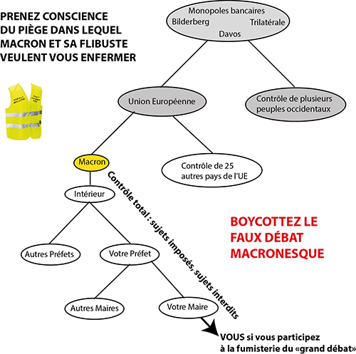Ps : à ceux qui s’imaginent que participer au « débat » macronesque serait utile, l’ami Raoul rappelle par un schéma la hiérarchie des intérêts qui pèsent sur eux -et sur tout le peuple, sur tous les peuples d’Europe.