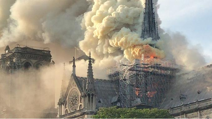 Terrible incendie. La flèche de Notre-Dame vient se s’effondrer. Nous sommes atterrés.