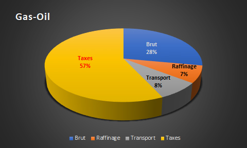 Tout cela serait guignolesque, s’il n’y avait pas un risque de conflagration (voire mondiale !) à cause des chamailleries entre chapelles mahométanes, et, plus prosaïquement, si le brave péquenot fumeur de clops en pilotant sa guimbarde n’en faisait pas les frais. Car, tout le monde le constate, les prix flambent à la pompe (comme on dit sur BFM-WC). Les mauvaises langues insinuent que c’est un peu la panique du côté de Bercy et de l’Élysée, car le spectre des Gilets Jaunes réapparaît, et les mêmes raisons ayant provoqué la légitime révolte non seulement perdurent, mais s’aggravent. Bigre ! Il serait facile d’éviter que le prix des carburants mette le feu : il suffit de baisser les taxes qui, rappelons-le, représentent 57% du prix du litre de gazole. Ah ! Mais, dira-t-on, le budget est en déficit, alors si on affame l’État… !
