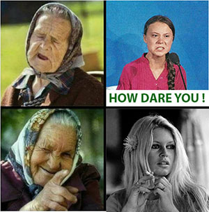 1- Une gaucho-escrolo genre Greta (pas bon !) versus une amie des animaux détestant les mahométans (beaucoup, beaucoup mieux ! )