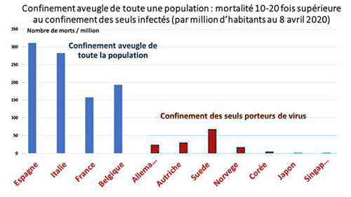 Eh oui ! Nous ne nous berlurions pas en disant que le confinement, c’est du licebroquage de chameau. En fouinant, je tombe sur la stat comparative ci-dessous :
