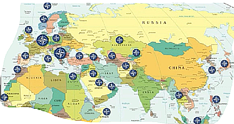 Regardez cette carte des implantations de l’OTAN (surtout des bases US) sur le vieux continent européen :